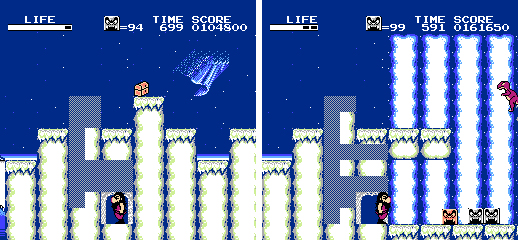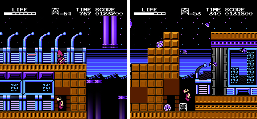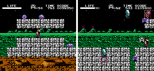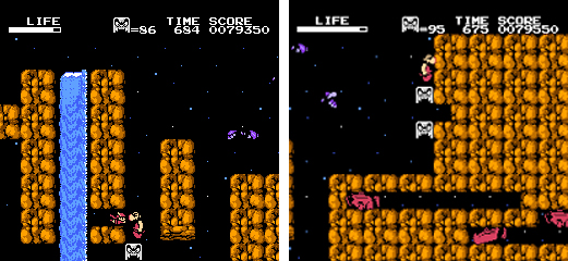 전체 난이도는 쉬운 편인데, 비밀 문들을 찾는 것이 조금 고생스럽습니다. 셀렉트 버튼을 누르면 자살할 수 있는데, 이게 가끔 필요할 때가 있을 수도 있습니다(…)