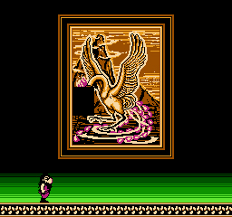 보스는 저렇게 움직이지 않고 공 같은 걸 쏘는 귀면와 부조인데, 바로 아래에 벽돌을 쌓고 가까이 붙어서, 위로 연달아서 정을 쏘면 금방 해치워요. 튀어나오는 공도 정에 맞아서 벽돌이 되어 버리거든요. 한대도 안 맞고 깰 수 있을 정도로 쉽습니다.