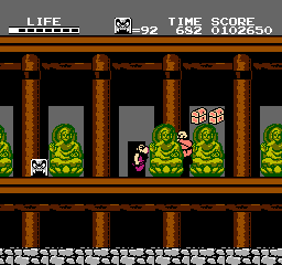 게임의 방식은 횡스크롤의 액션입니다. 쏘는 무기가 하나 있는데, 조각하는 ‘정’이었다고 하는군요. 저는 어릴 때 이게 손대포인 줄 알았습니다. 여튼 정으로 적을 맞추면 적은 귀면와(귀와)가 됩니다. 귀면와는 처마에 붙여 귀신을 쫓는 기와 장식인데요. 아마 귀면와가 다 살아 움직이면서 세상에 풀려났다는 설정인가 봅니다. 여튼 귀면와를 먹으면 쓸 수 있는 아이템이 됩니다. 벽돌처럼 주로 발판으로 사용하고 때로는 방벽을 쌓아 방어할 수 있습니다. 즉, 적을 쓰러뜨려 많은 귀와를 갖고 있을 수록 편리합니다.
