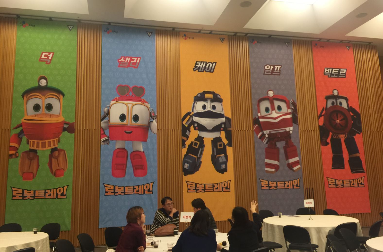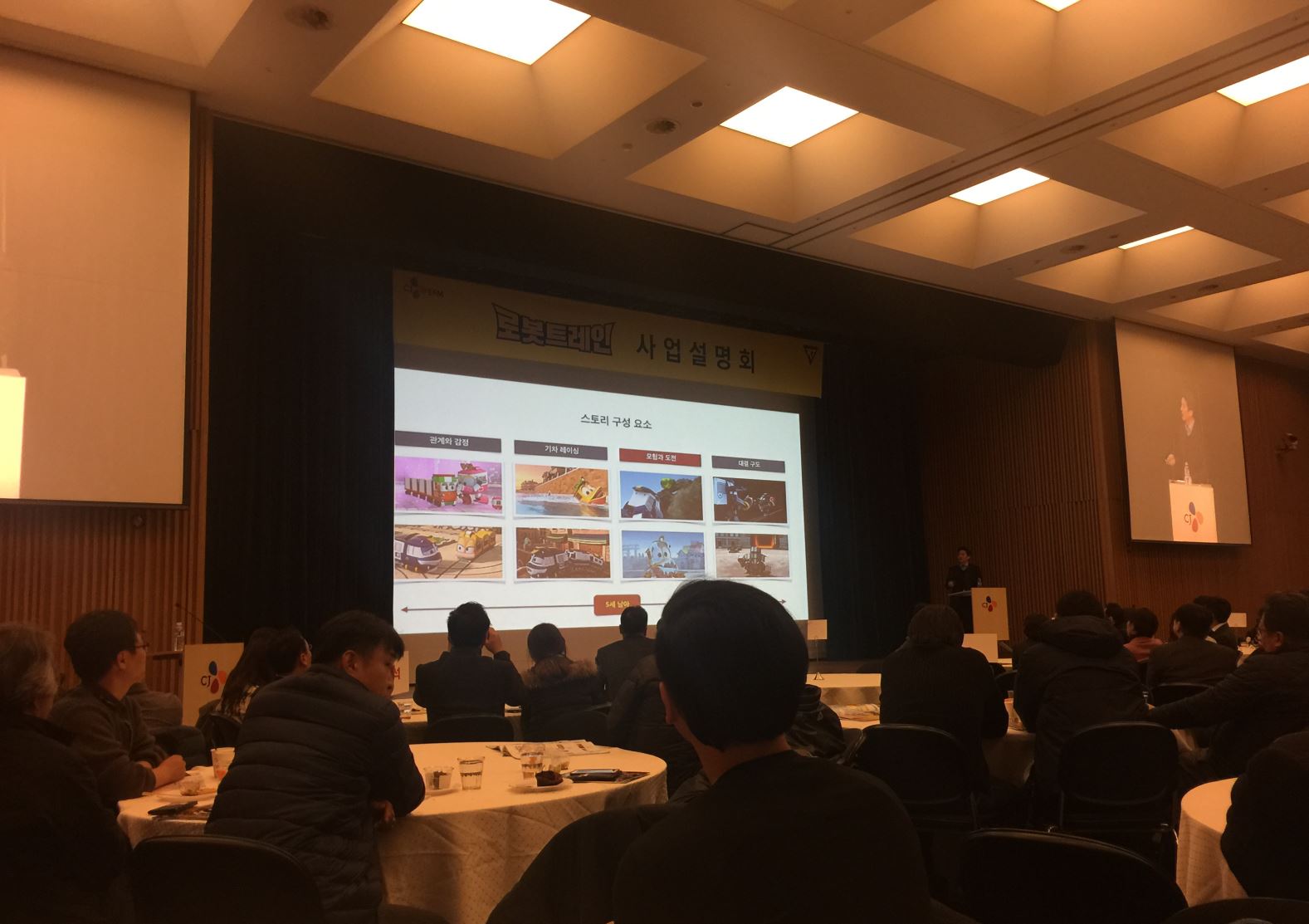 [로봇트레인] 사업설명회 2015년 1월 22일2021년 11월 8일 글쓴이: 칼리가리 교수 로봇트레인 사업설명회에 초대받았다. 도착하니까 로봇트레인의 케이가 맞아주고 있다. 작가들의 지정석이 있었다. 콘티를 그리신 이원재 감독님이 보인다. 설명 시작. 완구신문에 대문짝하게 났다. 가끔 회의 때 뵈었던 하세정 국장님이 등장. 하세정 국장님 수고하셨습니다. 완구들도 있다. 하나 정도는 꼭 사야지. 이 글 공유하기: 클릭하여 X에서 공유 (새 창에서 열림) X 페이스북에 공유하려면 클릭하세요. (새 창에서 열림) Facebook 좋아하기 가져오는 중... 관련